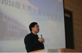 “专业分流是你们大学的第二次选择,也是人生重要的选择。欢迎大家进入文学与传媒学院学习”谭德兴教授如是鼓励在座的2016级的同学们,并详细介绍了文学与传媒学院的基本情况和大类分流方案。