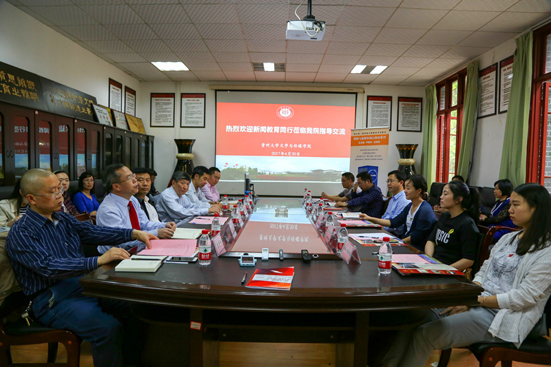 4月20日下午,由贵州大学文学与传媒学院和复旦大学出版社共同主办,贵州新知教育发展有限公司协办的贵州新闻教育改革高峰论坛在贵州大学人文楼217会议室举行。贵州大学党委副书记骆长江出席论坛,复旦大学新闻学院、复旦大学出版社、贵州新知教育发展有限公司,贵州省部分高校相关学院负责人、教研室主任、师生代表参加论坛。贵州大学文学与传媒学院副院长谭德兴教授主持论坛。