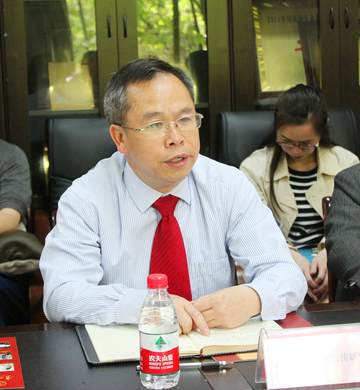 贵州大学文学与传媒学院院长杨仁厚教授致辞,他首先对与会嘉宾表示欢迎,并介绍了学院的办学设施、师资力量、学科建设、学生结构等情况。他希望参会代表对新闻教学改革多提宝贵意见,为新闻专业的发展出谋划策。