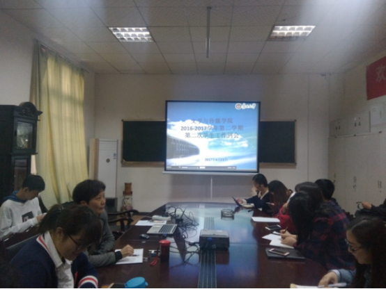 会上,学生科科长李笛就近期学生工作做总结和计划安排。李笛对学生清明节后返校情况进行通报,对反“网络诈骗”、党组织建设、共青团评比、勤工助学管理等工作做总结和说明,并向班委、学生会主席团布置毕业晚会等相关活动和安排,并提出相关要求。随后学生辅导员吴卿对学生干部5月工作给出详细安排以及补充说明,内容包括:“十佳大学生”评选、讲座、诚信广播剧、心理健康教育活动月系列活动、“一学一做”学习教育,要求各班、团支部按照学校及学院的要求积极组织参加活动,丰富校园生活。