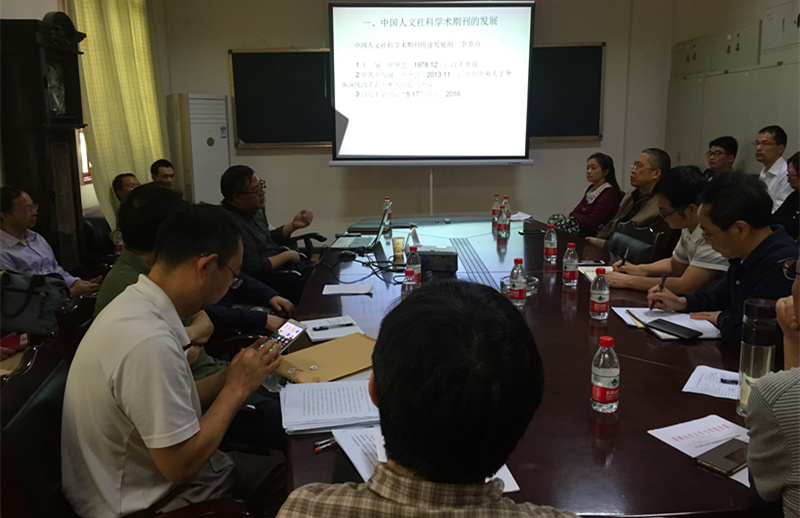 5月12日,由贵州大学哲学社会科学研究院主办、贵州大学文学与传媒学院承办的贵州大学2017年第25期文科讲坛在人文楼202会议室举办。《贵州社会科学》执行主编、三级研究员黄旭东应邀作题为“人文社科核心期刊发展趋势及其对论文写作的影响”的学术讲座。讲座由贵州大学文学与传媒学院院长杨仁厚教授主持。以文学与传媒学院为主的我校教师和研究生聆听了此次讲座。