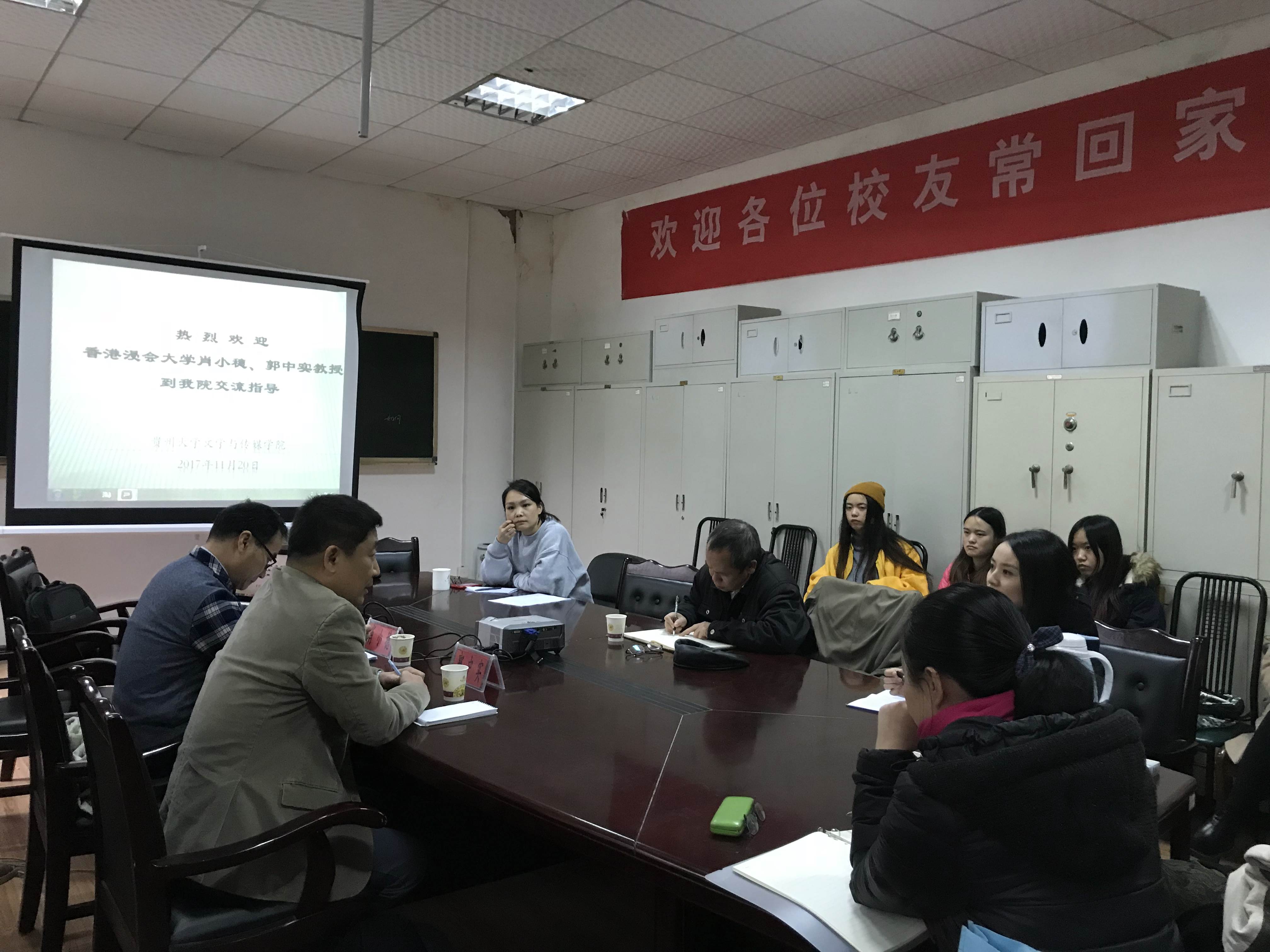 2017年11月20日下午,香港浸会大学新闻传播学专业肖小穗教授、郭中实教授到我院202会议室开展学术交流。院长杨仁厚教授主持交流会,新闻系教师张媛、周湄、聂萌、陈玥及新闻系硕士研究生和本科生代表参加座谈。