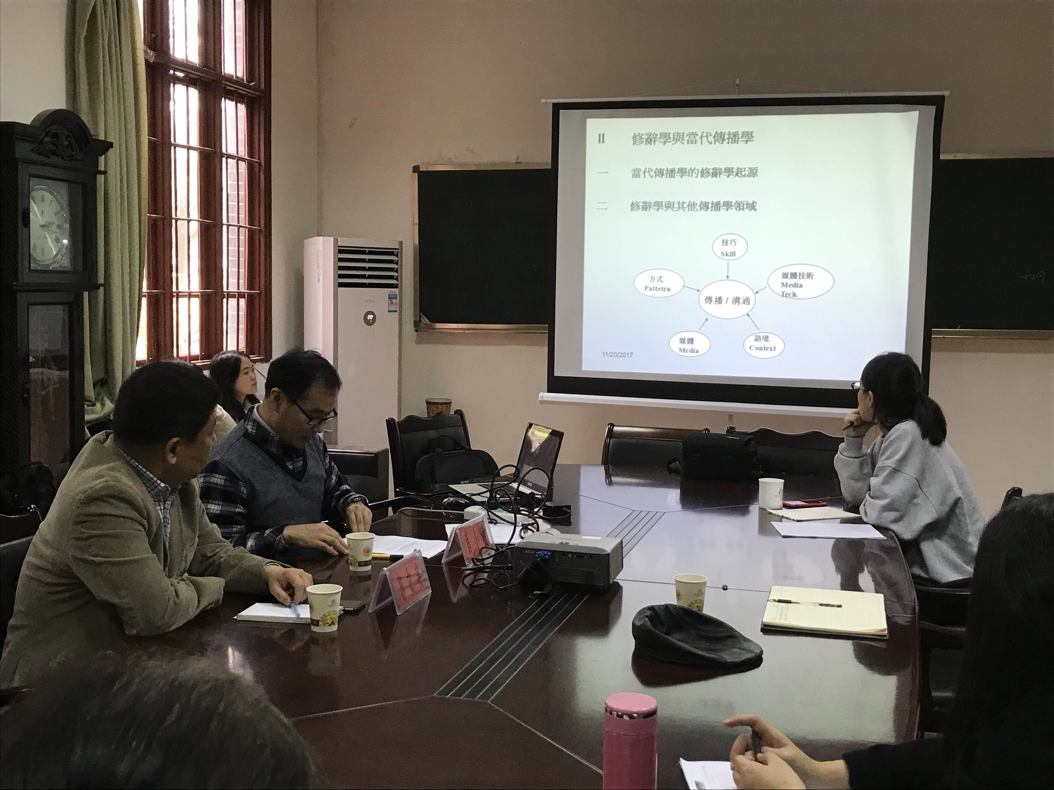 座谈会上,杨仁厚向两位来宾介绍了贵州大学和贵州大学文学与传媒学院的基本情况,新闻系张媛副主任介绍了新闻系的基本信息,郭中实教授给与会者介绍了香港浸会大学和该校传理学院的主要信息。接着,肖小穗教授做了题为《修辞在传播中的重要作用》的专题演讲,重点阐述了传播过程中修辞无处不在、修辞水平明显影响传播效果、传播学脱胎于修辞学等问题。演讲结束后,参会教师与两位教授就修辞在新闻传播中的作用、修辞与真实性等问题开展了深入的专业交流。学生还就赴香港求学的有关问题请教了两位教授。