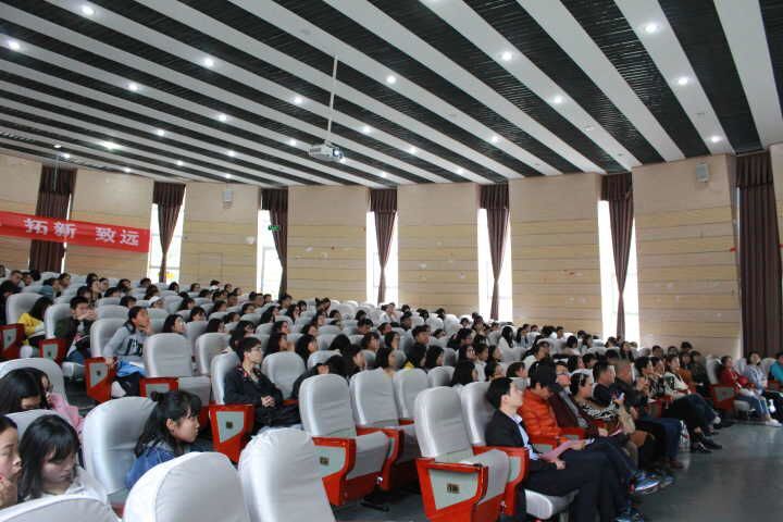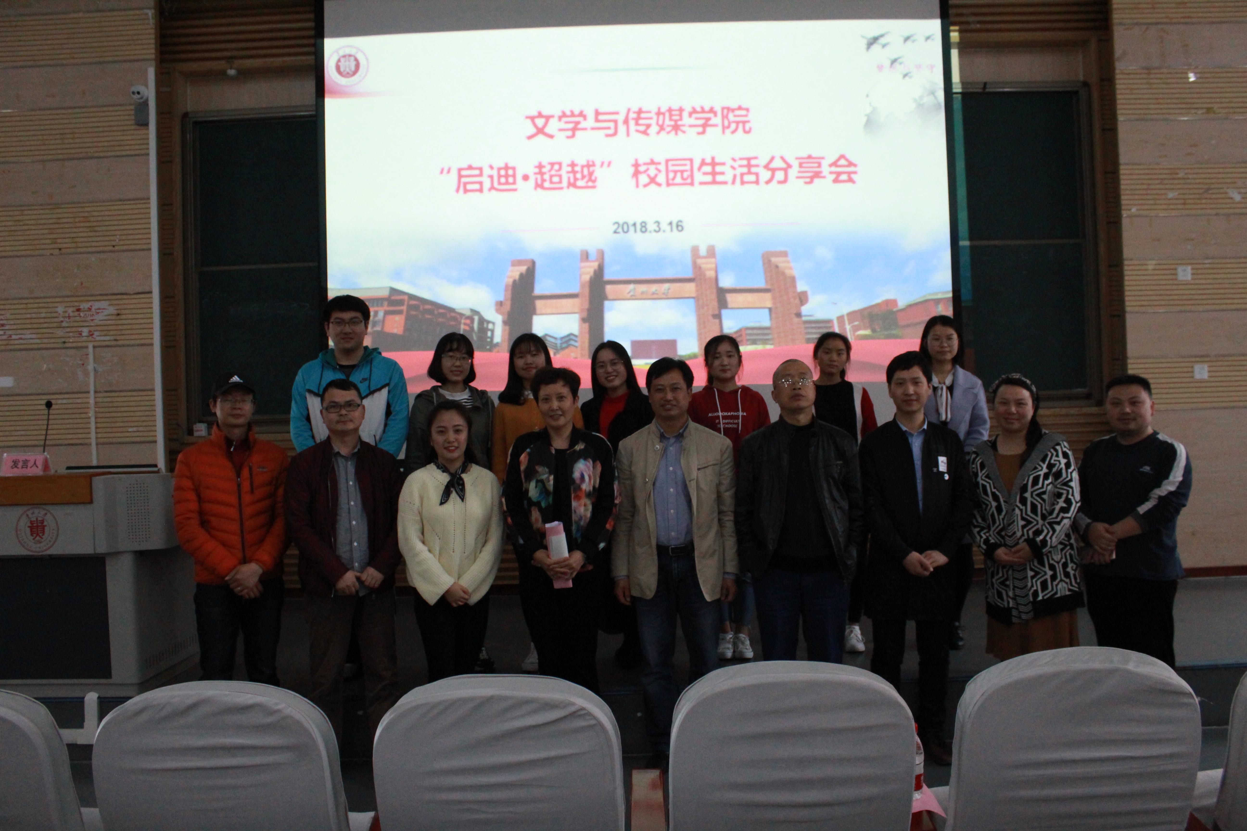 团委网站讯(记者 安洪锋 报道/摄影 董长虹)3月16日下午,由我校文学与传媒学院(以下简称“文传”)主办的校园生活分享会在西校区圆形报告厅举行。文传学院党委书记罗卫刚、副书记董蔚然、副院长谭德兴、班级导师杨世海、姚亮、方芳、张波、学生辅导员王婷婷、学生科老师吴卿、2016级全体学生出席会议。会议由四个环节组成。