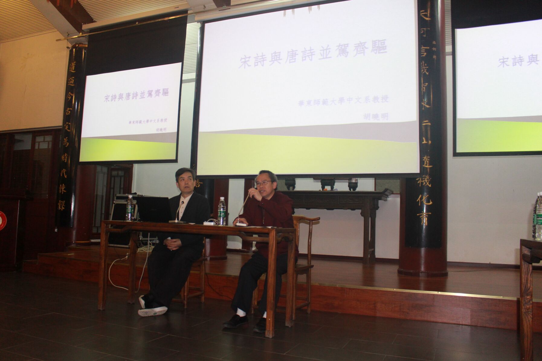讲座特邀华东师范大学胡晓明教授主讲“论宋诗与唐诗并驾齐驱讲座”。