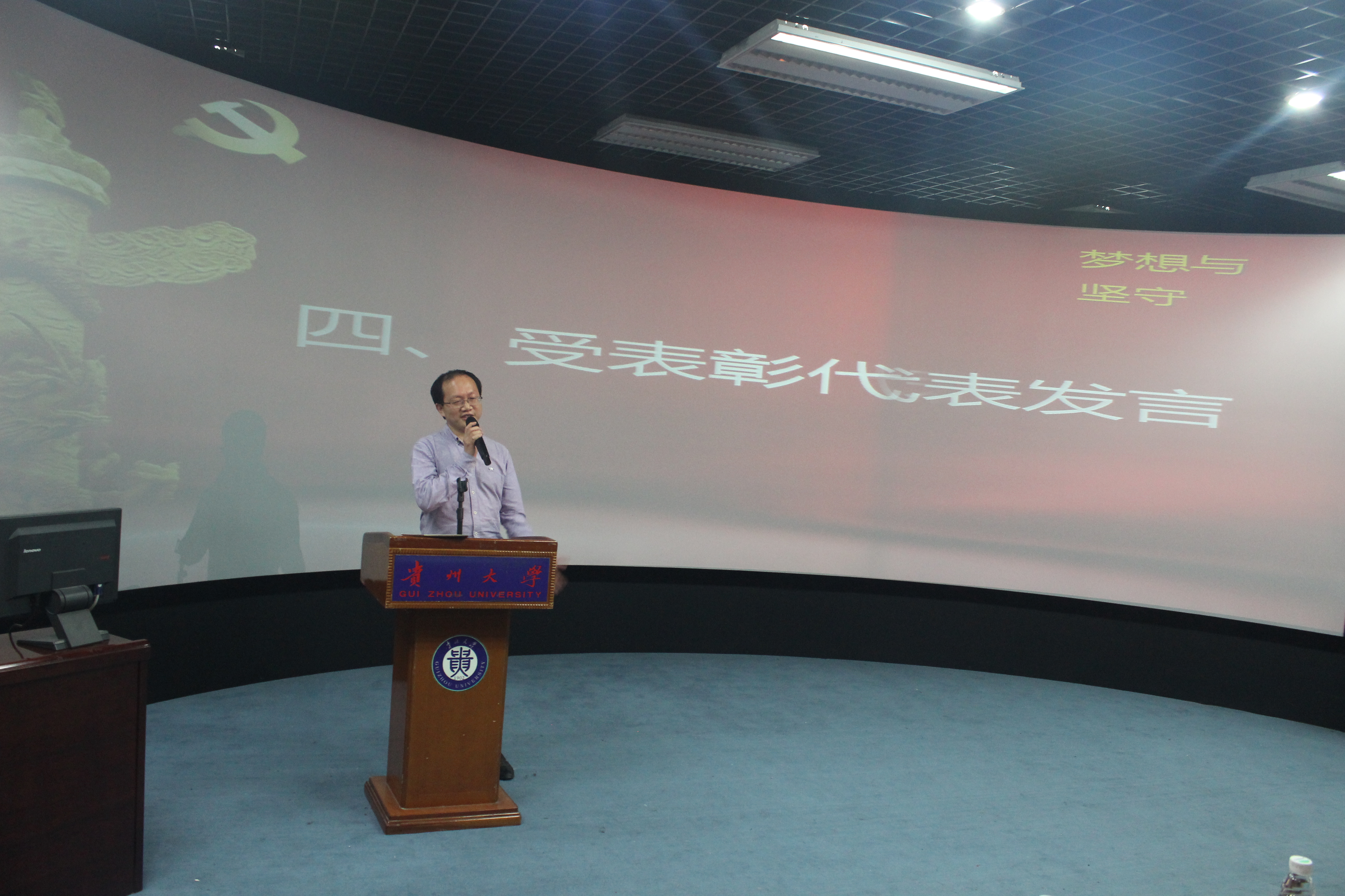 校党委副书记骆长江讲话。骆书记首先对学院隆重召开纪念党的生日活动和表彰大会表示祝贺,对通过表彰会等形式激励广大党员不断开拓奋进、推进学院各项工作开展的形式给予充分肯定。他希望,每一名受表彰的同志珍惜荣誉、以身作则、再接再厉、奉献在前、服务当先,在今后的学习和工作中再创佳绩。号召广大师生以先进典型为榜样,为文传学院和贵州大学的建设和发展做出贡献。