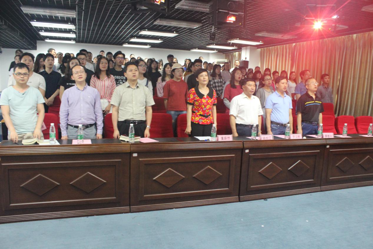 大会在雄壮的国歌声中拉开帷幕,全体师生昂首肃立,以饱满的激情与歌声,表达对党和国家真挚而深沉的情感。