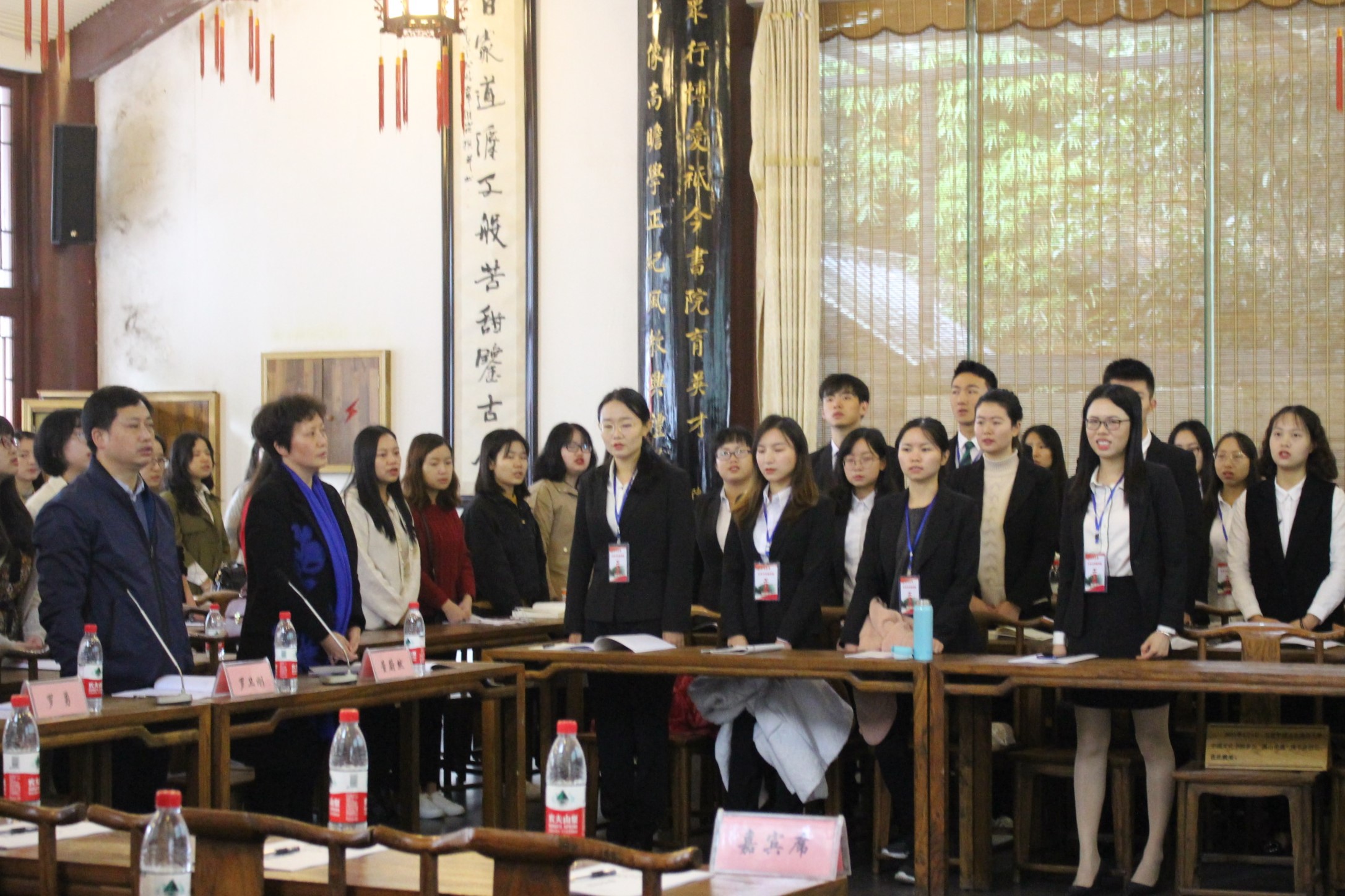 接下来,校党委研究生工作部罗勇部长、文学与传媒学院院长杨仁厚分别为文学与传媒学院第一届研究生团总支及第二届研究生会干部颁布聘书。