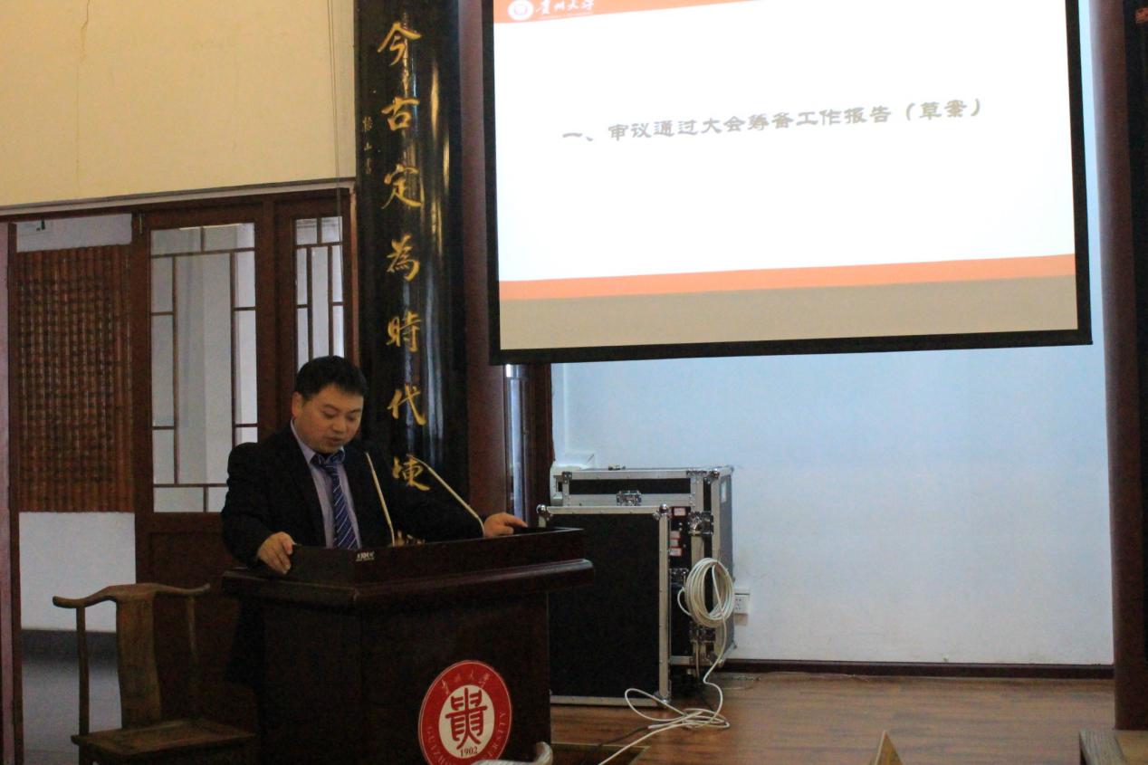 随后,会议听取了文学与传媒学院第一届研究生团总支书记吴晓波做的工作报告。她回顾了贵州大学文学与传媒学院团总支建立和发展的情况,总结了团总支在开展日常工作中所获得的宝贵经验,同时对下一届团委的工作提出了新的展望。