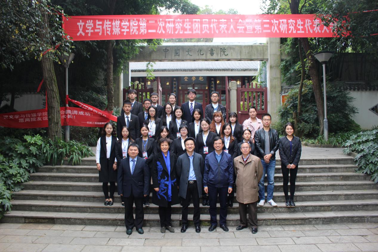 2018年10月26日上午,贵州大学文学与传媒学院第二次研究生团员代表大会暨第三次研究生代表大会在中国文化书院勉学堂顺利召开。贵州大学校党委研究生工作部罗勇部长、贵州大学文学与传媒学院党委书记罗卫刚、院长杨仁厚、党委副书记董蔚然、学生辅导员吴卿出席本次大会。多个校级组织、兄弟院校团组织、研究生会负责人以及文学与传媒学院研究生代表参加此次会议。本次大会分为预备会议和正式会议两部分。