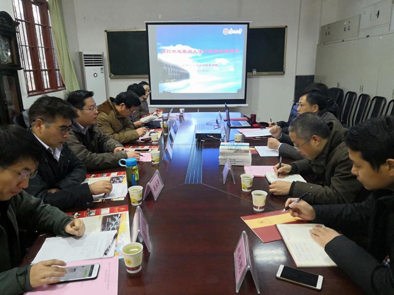 2018年12月7日上午,苏州大学ledong乐动(中国)体育官方网站党委副书记阴浩,院语言学习系主任、院党委委员王建军等一行6人来我院交流访问。座谈会在人文楼202举行。我院党委书记罗卫刚,主持工作的副院长谭德兴,院党委副书记董蔚然,中文系主任赵永刚、副主任杨世海参加会议,会议主要围绕学生党建、思政、管理工作及汉语言文学专业人才培养等方面展开。