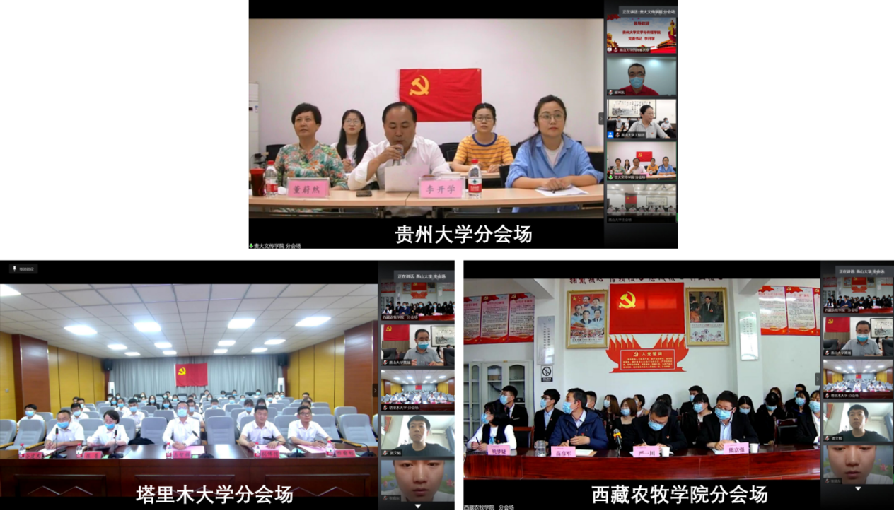 (文学与传媒学院 王婷婷)在党的第99岁生日之际,贵州大学文学与传媒学院本科生第一党支部与燕山大学、塔里木大学、西藏农牧学院三所西部高校共五个党支部共同启动了主题为“东西共建云端携手,互学互促使命担当”的校际“党支部云共建”活动。7月1日下午,共建活动启动仪式暨共建党支部第一次同过组织生活在线上线下同步举行。燕山大学党委副书记黄晟,塔里木大学党委常委、组织部部长马智群,0贵州大学文学与传媒学院党委书记李开学,西藏农牧学院党委组织部副部长严一川等分别在主会场和各分会场出席仪式并致辞。共建高校相关部门和院系领导、共建党支部书记及全体党员参加了本次活动。
