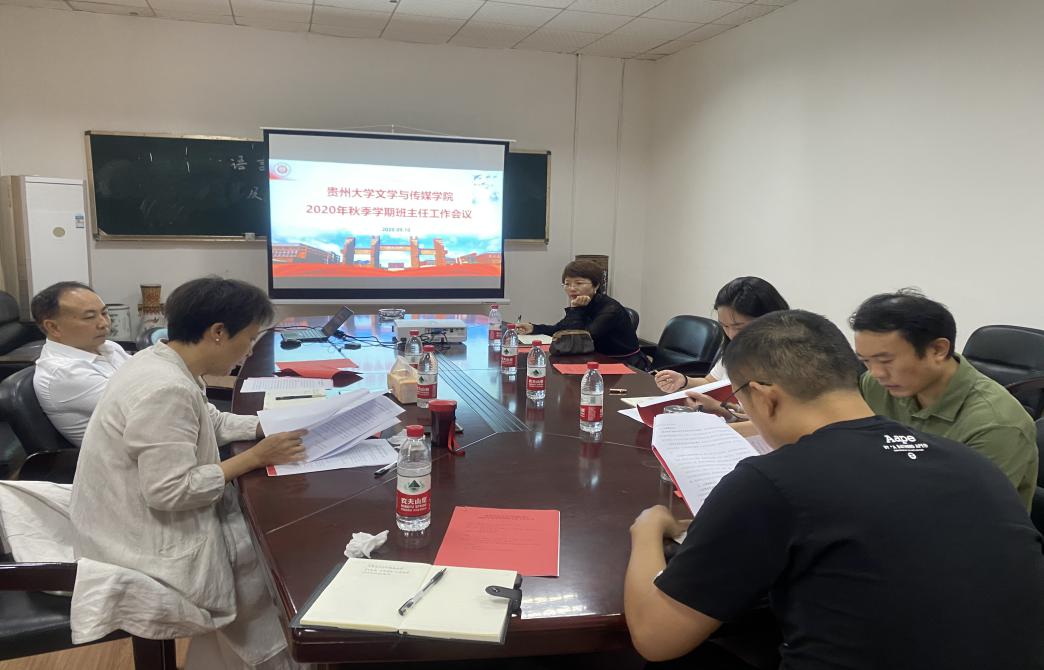 9月10日上午9:30,我院在人文楼202会议室召开2020年秋季学期班主任工作会议。学院党委书记李开学、副书记董蔚然、副院长唐娟、学生科各辅导员及各班班主任参加会议。会议由董蔚然主持。学院党委副书记董蔚然传达《文学与传媒学院关于加强2020年秋季学期学生教育管理的通知》,并对学院学生工作做通报和安排;会议讨论了《贵州大学文传学院学生突发事件应急处理工作方案》(讨论稿);学院党委书记李开学对学院新学期学生管理工作提要求。