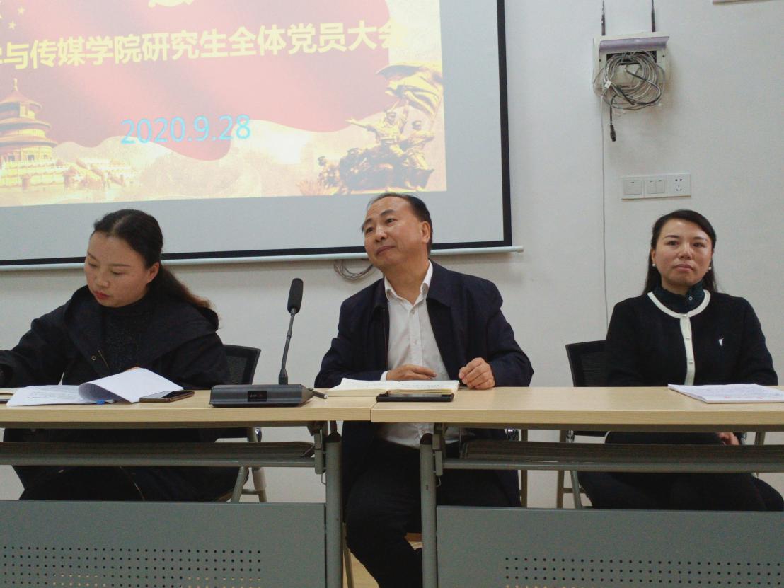2020年9月28日下午,贵州大学文学与传媒学院研究生全体党员大会在人文楼103会议室召开。院党委书记李开学、院党政办公室主任方芳出席本次会议。会议由文学与传媒学院研究生思想政治辅导员、研究生第二党支部书记姬丹主持,全体研究生党员参加。