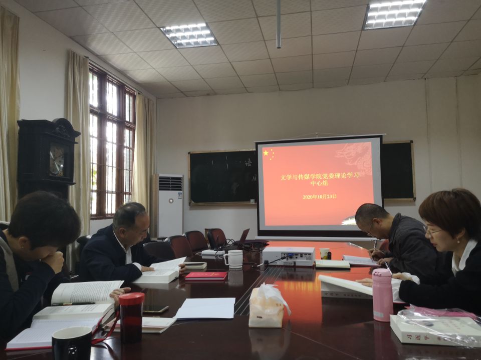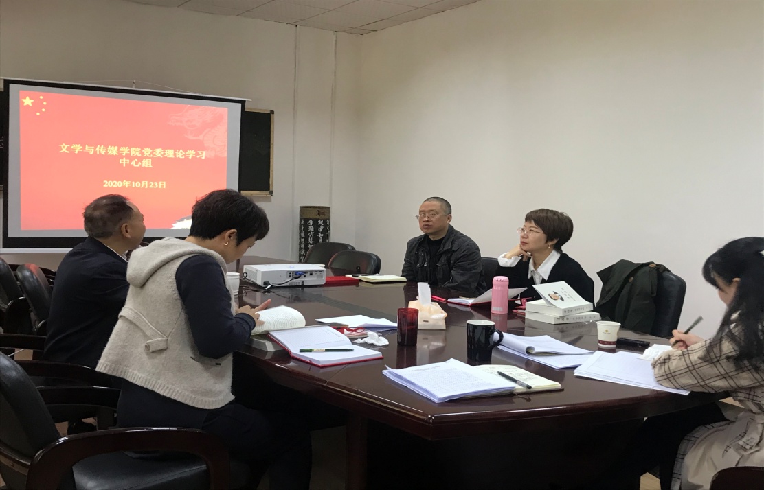 10月23日上午,文学与传媒党委在人文楼202会议室召开党委中心组理论学习,学院党委领导班子成员、党委委员参加了中心组理论学习,会议由党委书记李开学主持。