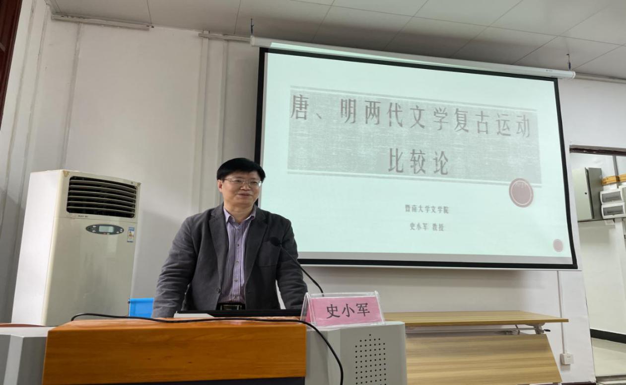 2020年11月6日,由贵州大学哲学社会科学研究院主办,贵州大学文学与传媒学院承办的贵州大学“文科讲坛”2020年第28期在人文楼308室举行,特邀暨南大学ledong乐动(中国)体育官方网站史小军教授主讲“唐、明两代文学复古运动比较论”。