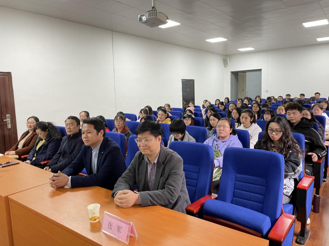 讲座由文学与传媒学院张军教授主持,学院教师、硕士研究生、本科生100余人参加。