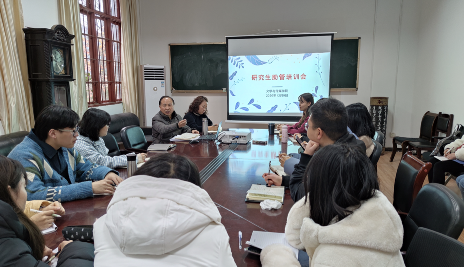 为进一步提高研究生干部和助管工作能力,2020年12月9日中午,文学与传媒学院于人文楼202会议室召开研究生干部公文写作培训活动。培训由学院党委书记李开学主讲,研究生思政辅导员姬丹主持,研究生干部、研究生助管共二十余人参加。