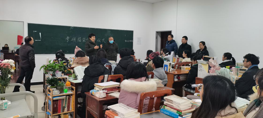 考研在即,为营造积极温暖的考试氛围,12月17日,文学与传媒学院学生科在人文楼一楼自习室开展了“助力考研——为考研学子发放暖心‘福袋’”活动。学院党委书记李开学、院党委副书记董蔚然、院长谭德兴、学生科辅导员到自习室慰问考研学子,为考研学子加油打气。