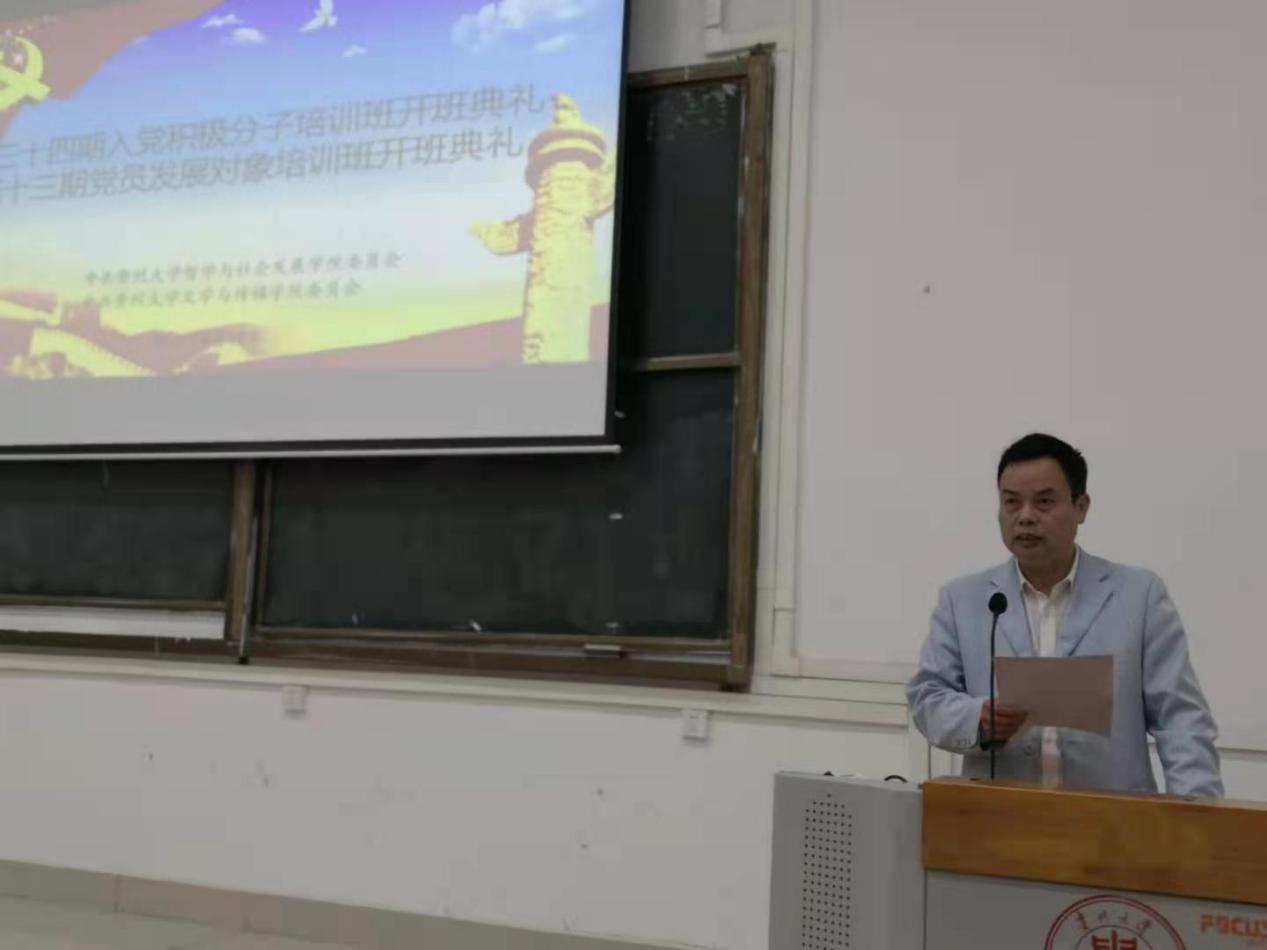 2021年4月19日中午,文学与传媒学院及哲学与社会发展学院于法学楼101DT教室举办了第十三期党员发展对象培训班暨第三十四期入党积极分子培训班开班仪式。文学与传媒学院党委书记李开学、哲学与社会发展学院党委书记周乐成、文学与传媒学院党委副书记董蔚然、哲学与社会发展学院副书记黄梅、文学与传媒学院党委组织员姬丹出席仪式,开班仪式由哲学与社会发展学院辅导员晏梦勋主持,文学与传媒学院及哲学与社会发展学院培训班全体学员参加会议。