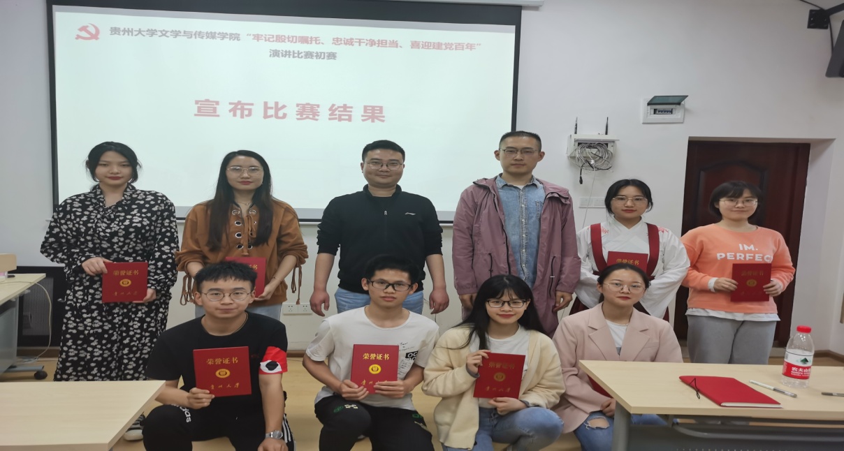 回首不忘来时路,阔步征程守初心。新时代青年大学生肩负新使命,任重道远,当学会历史思维,培养历史眼光,增强历史担当,明理增信,在缅怀追思中奋力前行,将个人理想追求融入党和国家事业之中,创造属于我们时代的新的辉煌。至此,贵州大学文学与传媒学院“牢记殷切嘱托、忠诚干净担当、喜迎建党百年”专题教育演讲比赛圆满落幕。