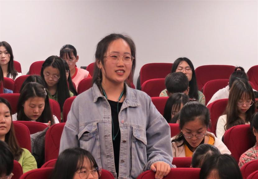 我院学生郭一洁向彭兴滔老师请教人生经验,彭兴滔老师鼓励年轻学生要培养高远的眼光,不要局限于某个区域。