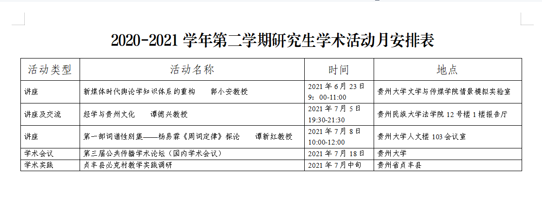 2020-2021学年第二学期研究生学术活动月安排