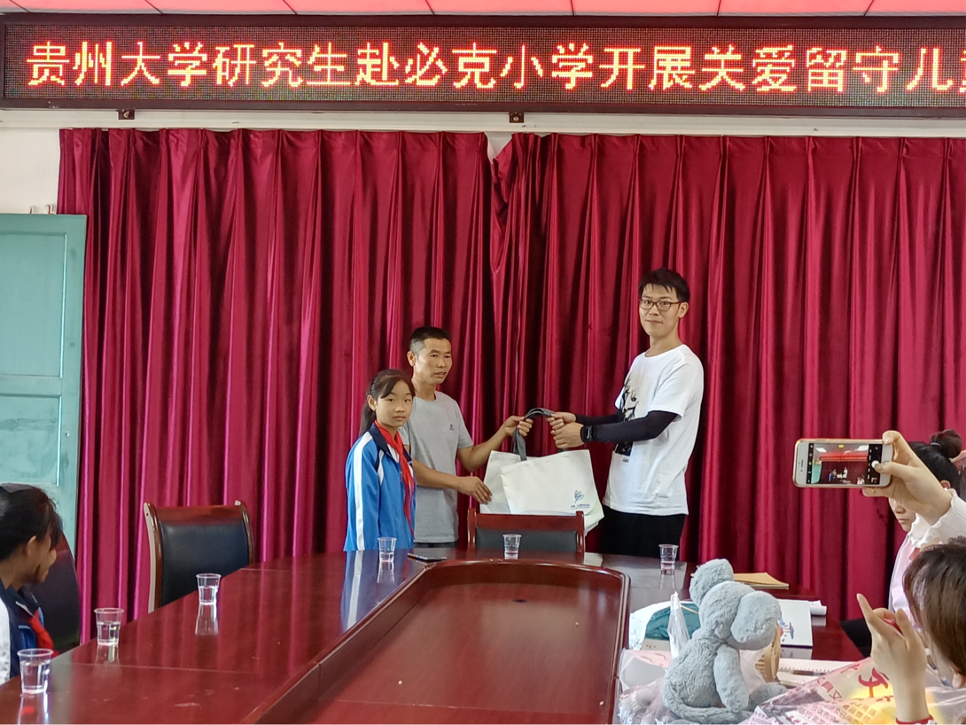 会上,党志鹏代表学院为必克小学留守儿童捐献了文具等慰问物资。