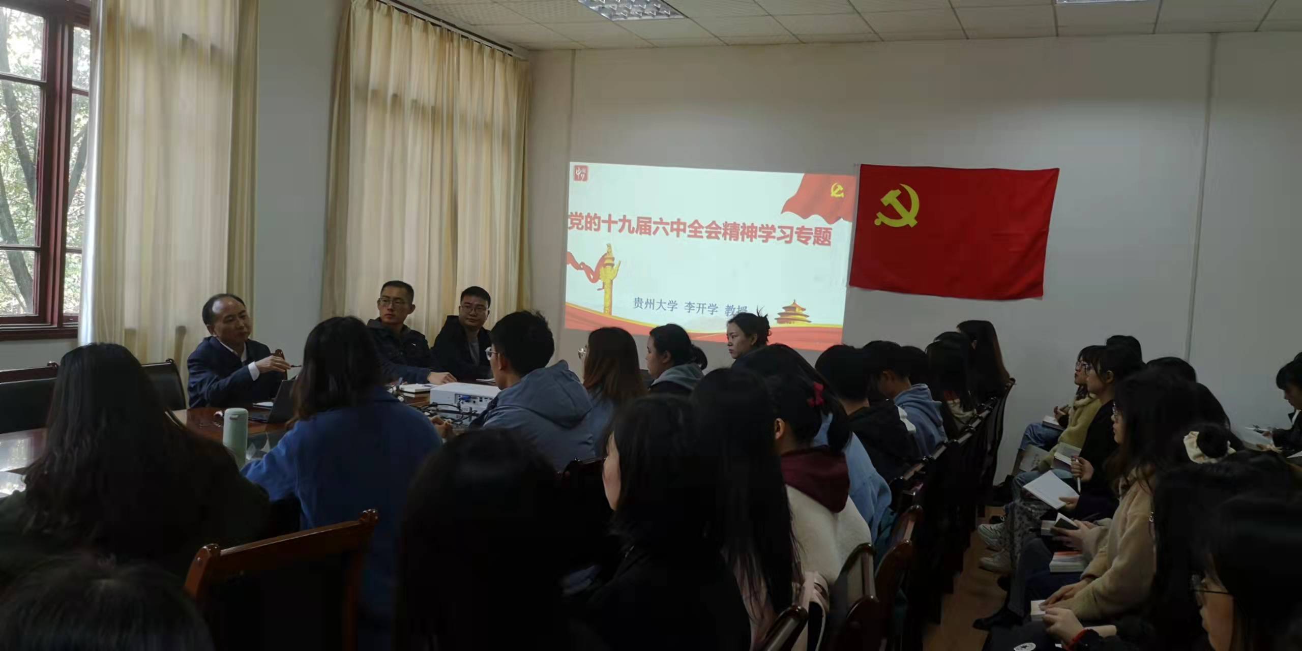 为加强预备党员的党性教育,提升预备党员的认同感和责任感,时时刻刻以一名优秀党员的标准严格要求自己,在学习工作生活各方面充分发挥党员的先锋模范作用,2021年11月22日中午,贵州大学文学与传媒学院在人文楼204会议室隆重举行预备党员入党宣誓仪式,文学与传媒学院党委书记李开学进行预备党员第一课——第十九届六中全会精神专题宣讲。文学与传媒学院党委副书记唐娟、党政办公室主任方芳、思想政治辅导员姬丹、张健、曹家鹏、学生党支部全体支委干部出席宣誓仪式。