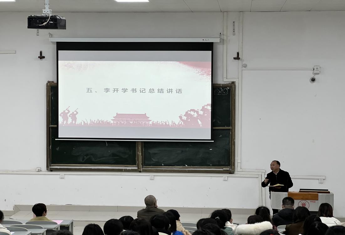 为促进毕业生升学就业,推进毕业生顺利毕业,贵州大学文学与传媒学院于2022年2月28日下午在法阶楼101DT召开2018级本科生博学计划总结暨就业推进会。文学与传媒学院党委书记李开学,党委副书记、院长谭德兴,党委副书记、副院长唐娟,学院副院长赵永刚以及学院思政辅导员、2018级全体本科生参加。会议由年级辅导员张健主持。
