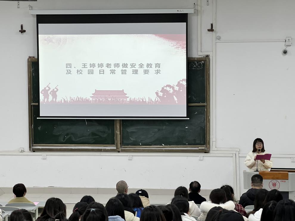 王婷婷向同学们强调安全教育及校园管理要求,强调日常生活中要注意防火、防盗、防骗、防溺水、防交通安全事故、防食品安全事故等,当前疫情形势仍然严峻,同学们要提高新冠肺炎疫情防控意识,佩戴好口罩,坚持每天按时健康打卡。