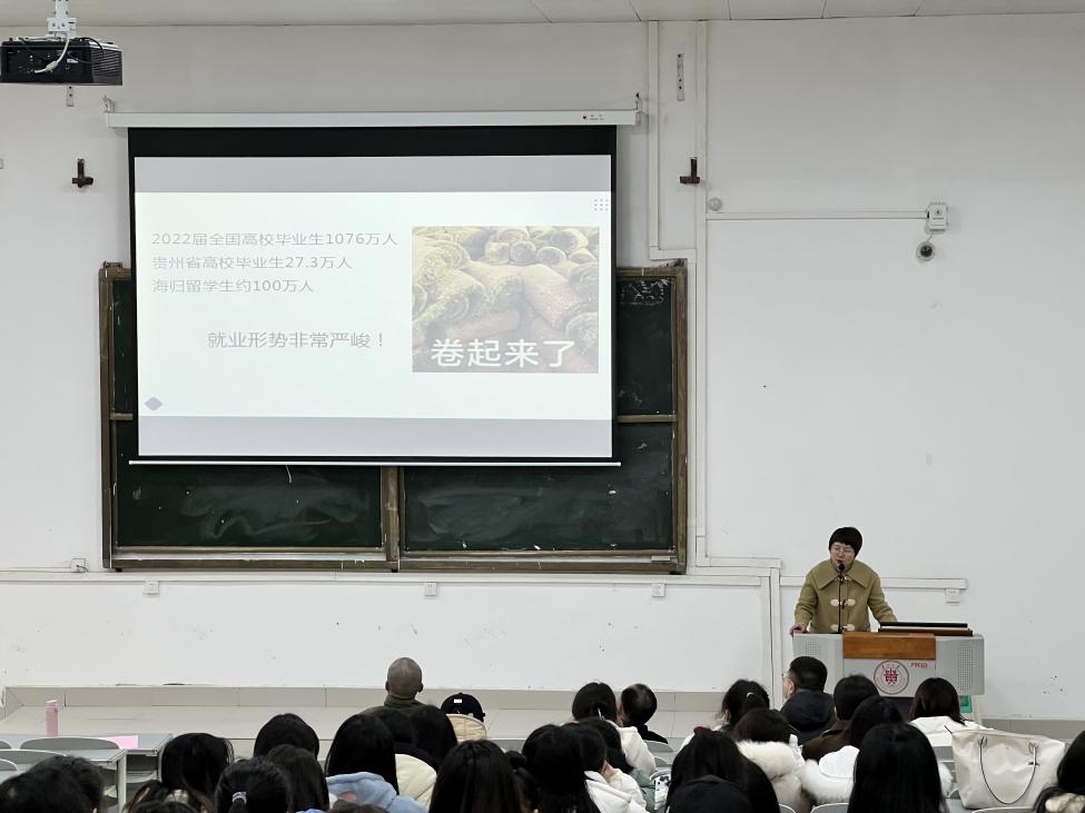唐娟为毕业生们上了一堂针对性强的就业指导课。运用近几年贵州大学、文传学院的就业数据,客观清晰地向同学们分享了就业知识及经验,让同学们认清形势、拓宽视野、提前准备,把握住春季招聘的关键时机,高质量就业。