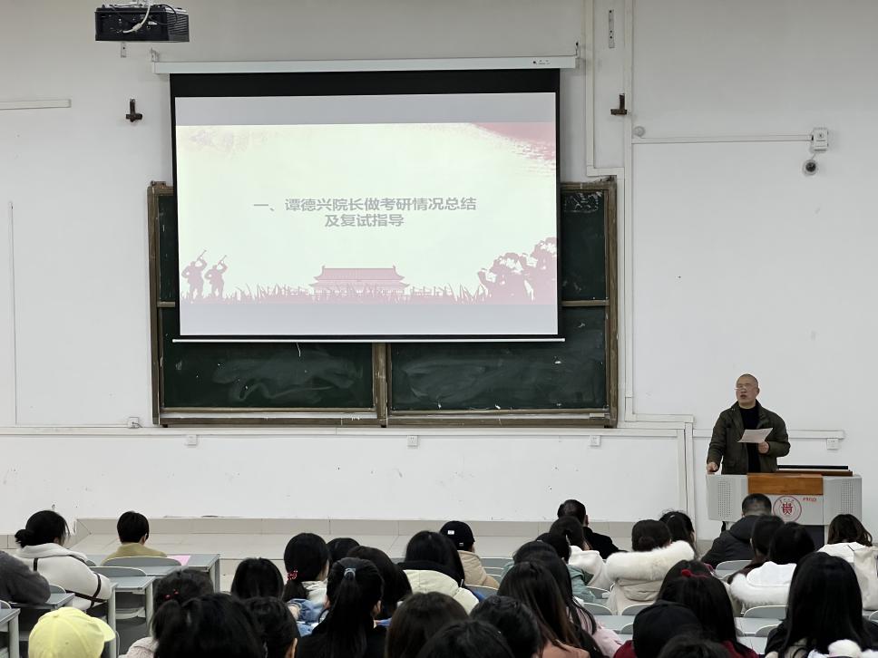 谭德兴根据2018级毕业生考研的具体情况,结合学院考研数据,从考研情况、调剂条件、复试指导等考研同学最为关心的问题,全面详细、有针对性地进行讲解,对同学们集中性困惑的调剂、复试等问题,通过列举实际例子对应对措施等给予说明。