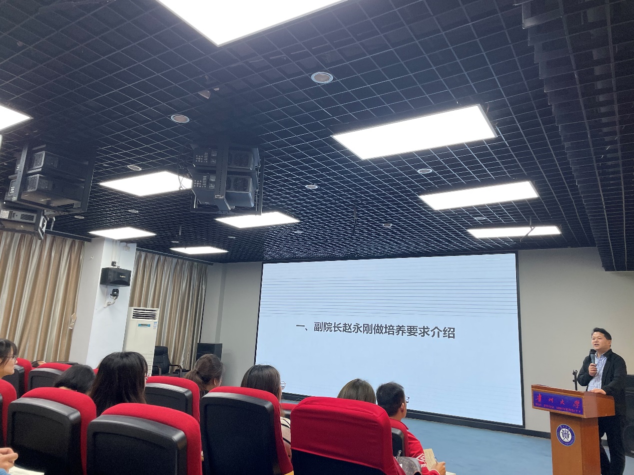 首先,赵永刚副院长为我院研究生做各个阶段培养方面的要求。他指出,我院研究生学习上的积极主动性还需进一步提升,鼓励同学们应该有干劲,全面提高自己的能力,但在定目标的时候也要结合自己的实际,每天进步一小步,坚持下去就是一大步;同时,他还建议同学们应该多与自己的导师、任课老师加强沟通,构建健康积极的师生关系。