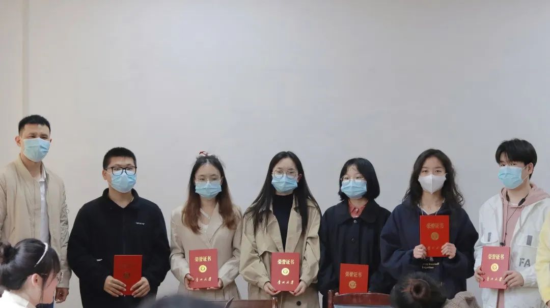 会议对在2020-2021年度表现优异获得“年度优秀记者”的左创、杨秀竹、周丹、魏雪媛、梁妤、张婷、李雪健、黎菊8位同学进行表彰,由张亚军副部长和唐娟副院长进行颁奖,并合影留念,学生代表魏雪媛做获奖发言。