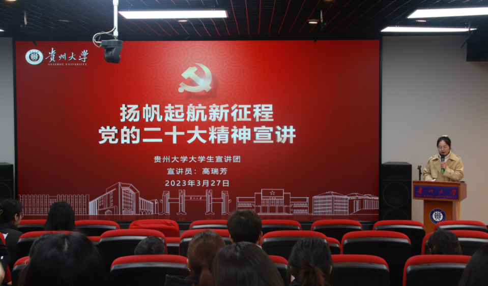 (贵州大学大学生宣讲团高瑞芳同学进行宣讲)