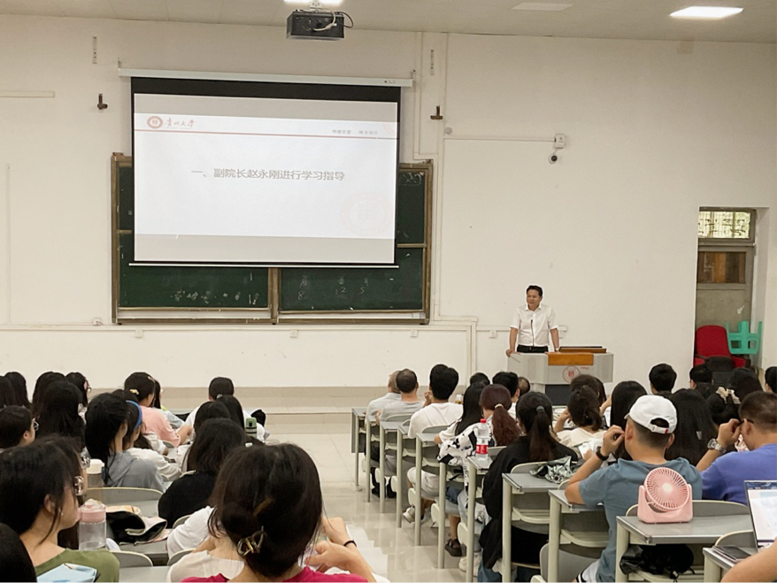 赵永刚进行学习指导及安全教育。他指出,现在是准备毕业论文选题的重要时期,对选题要予以重视,建议同学们在毕业论文的选题方向尽量与报考研究生的专业方向保持一致,以便在今后的学术研究中得到连贯与长期的发展。其次,他强调保障人身安全的重要性,提高防溺水的安全意识,注意消防安全、交通安全,严防网络诈骗及电信诈骗,为考研复习做好安全保障。