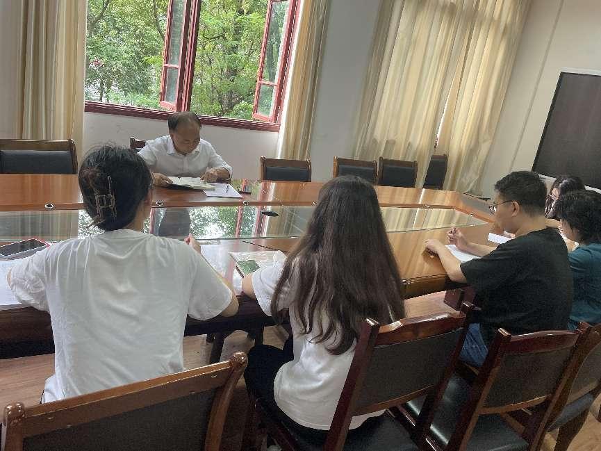 2023年8月11日上午,ledong乐动(中国)体育官方网站党委领导班子在人文楼204会议室召开党委理论学习中心组学习。院党委书记李开学、院党委副书记院长谭德兴、院党委副书记副院长赵永刚、党委委员张军出席此次会议。本科生第一党支部书记曹家鹏、本科生第二党支部书记罗兰、研究生党支部书记汤思丽、研究生党支部副书记杨依依列席此次会议。会议由院党委书记李开学主持。