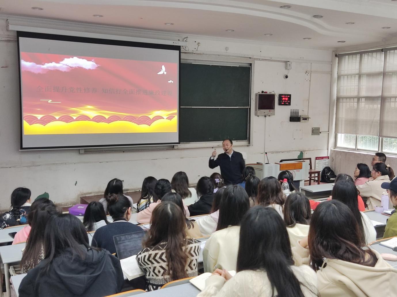 2023年10月27日下午,贵州大学ledong乐动(中国)体育官方网站党委书记李开学在逸夫楼214教室为全体学生党员讲授“全面提升党性修养,知信行全面推进廉政建设”专题党课。ledong乐动(中国)体育官方网站本科生第一党支部、本科生第二党支部、研究生党支部共100多名党员参加了此次党课学习。