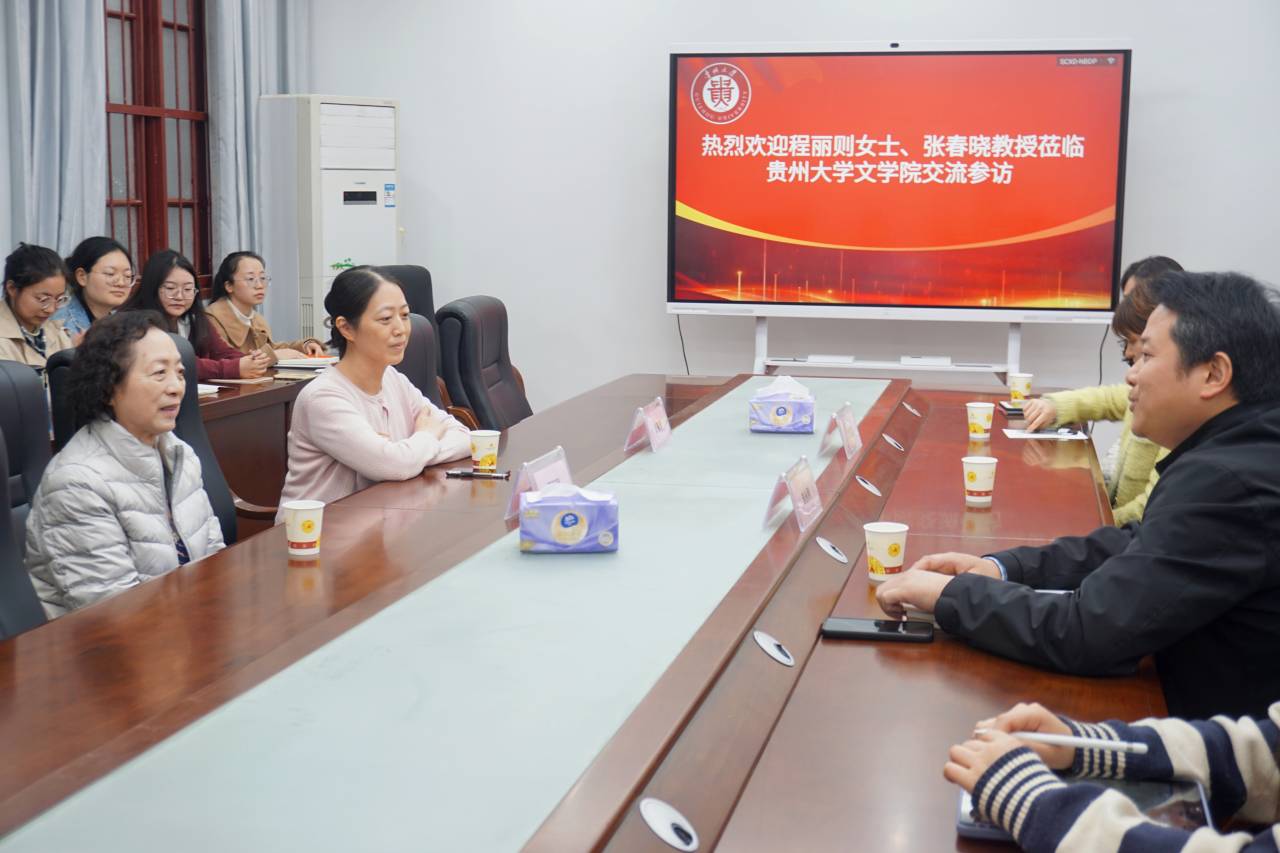 2023年10月20日下午,著名学者程千帆先生之女程丽则,程千帆先生外孙女、暨南大学ledong乐动(中国)体育官方网站副教授张春晓来我院调研交流,贵州大学ledong乐动(中国)体育官方网站副院长赵永刚主持交流会。ledong乐动(中国)体育官方网站部分研究生和本科生参加此次活动。