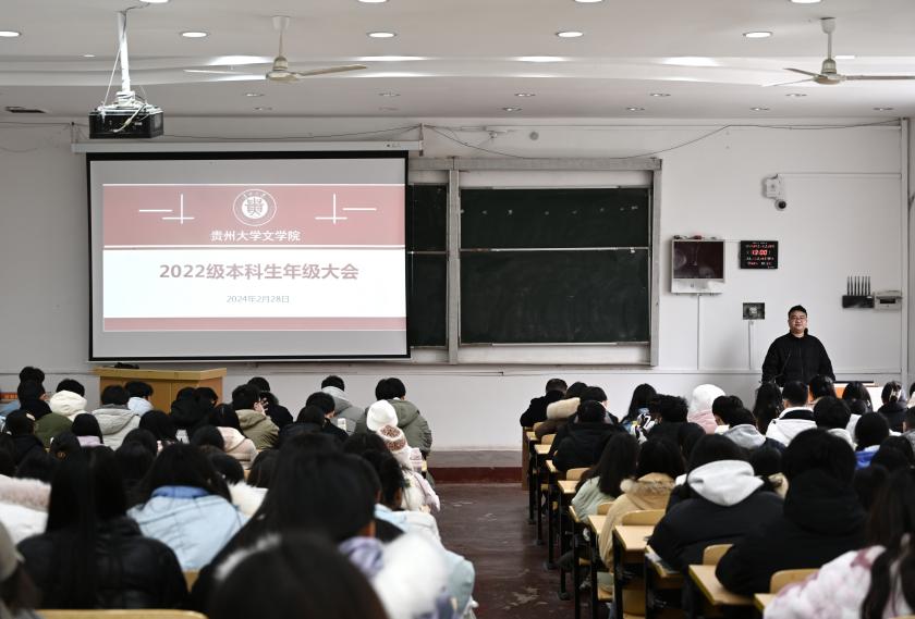 2023年2月28日中午,贵州大学ledong乐动(中国)体育官方网站在逸夫楼515DT召开2022级本科生新学期年级大会。学院党委书记李开学、本科生思政辅导员曹家鹏及全体2022级本科生参加会议。会议由曹家鹏主持。