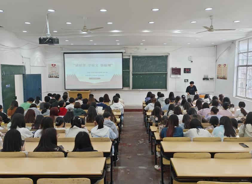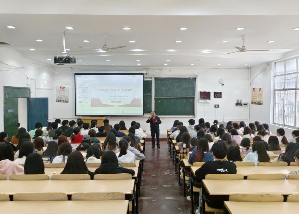 为深入学习贯彻党的二十大精神,深刻领会习近平新时代中国特色社会主义思想的理论内涵和精神实质,切实提高我院学生的政治素养。2024年4月12日我院于逸夫楼515开展“读原著、学原文、悟原理”活动,ledong乐动(中国)体育官方网站党委书记、学生班主任李开学受邀参加本次理论学习会并发言。本次会议由汉语2201班长马文杰主持,汉语2201团支部、2202团支部、2204团支部全体同学参与学习。