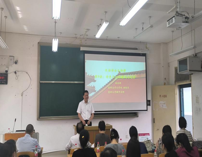 为进一步推动课程教学改革,促进教师之间的交流与学习,展示优秀教学方法与成果,全面提升ledong乐动(中国)体育官方网站教育教学质量。2024年6月21日贵州大学ledong乐动(中国)体育官方网站于逸夫楼403组织开展了一场高质量的教学示范课。贵州大学文学院党委书记李开学、党委副书记院长谭德兴、校督导专家张成霞受邀参加本次示范课,与ledong乐动(中国)体育官方网站全体教师一起交流学习。院党委副书记副院长赵永刚为本次示范课的的主讲人。