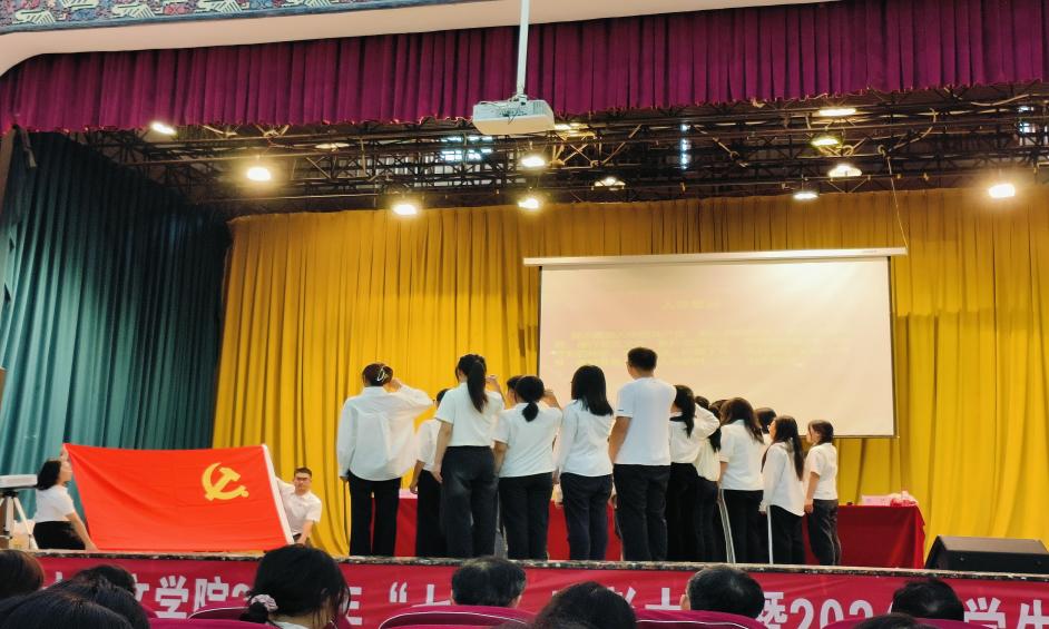 2024年上半年新发展的17名党员在庄严的党旗下进行入党宣誓。李开学宣读新接收预备党员名单,张军带领新党员进行入党宣誓。