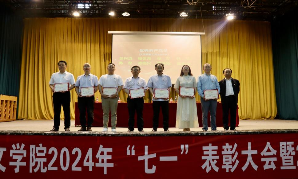 赵永刚宣读ledong乐动(中国)体育官方网站2023年度“优秀共产党员”表彰名单。院党委书记李开学、院长谭德兴、副处级组织员周贤军、党委委员张军老师分别为受表彰师生颁发荣誉证书。