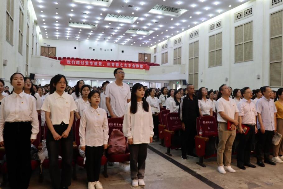 大会在全体师生奏唱的中华人民共和国国歌中拉开序幕。