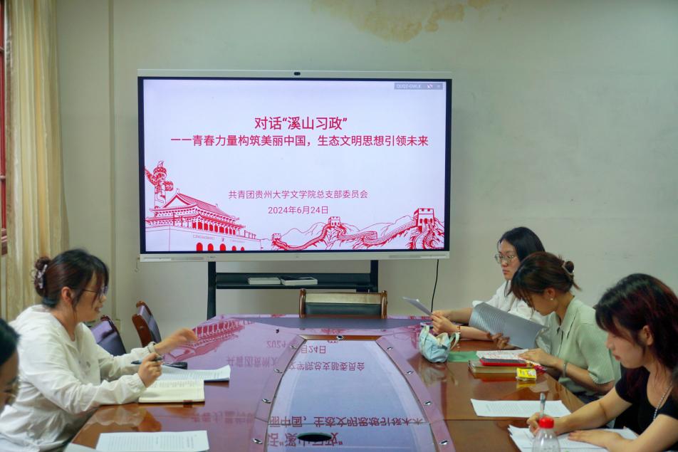 2024年6月24日,共青团贵州大学ledong乐动(中国)体育官方网站研究生总支部委员会在人文楼204组织开展“青春力量构筑美丽中国,生态文明思想引领未来”主题溪山习政理论学习活动。研究生辅导员罗兰及2023级全体研究生参加此次学习,会议由ledong乐动(中国)体育官方网站团总支书记杜瑶瑶主持。