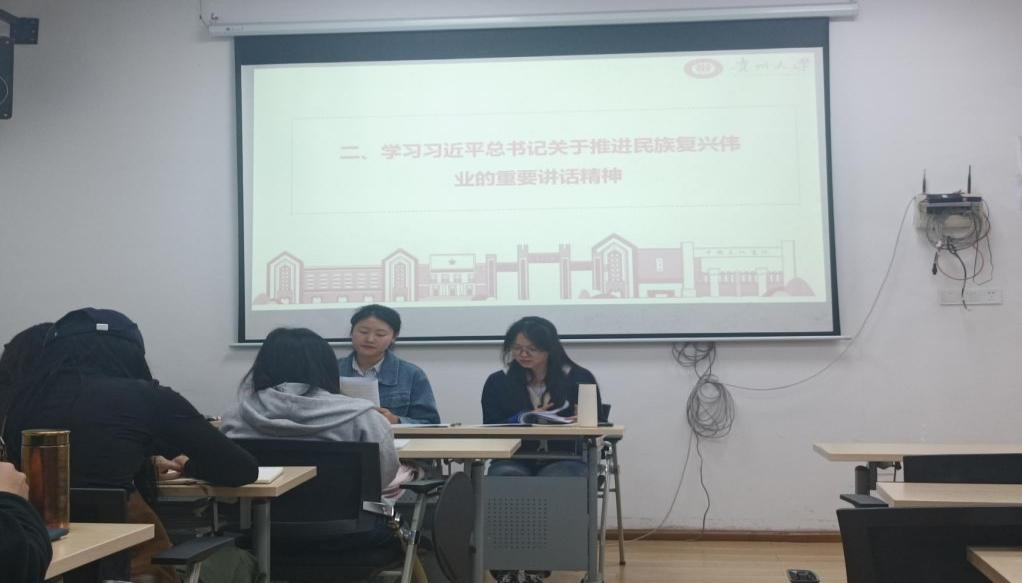 2024年10月24日,共青团贵州大学ledong乐动(中国)体育官方网站研究生总支部委员会在人文楼103教室组织开展“弘扬爱国主义精神,奏响民族复兴强韵”主题溪山习政理论学习活动。2024级全体研究生参加此次学习,会议由ledong乐动(中国)体育官方网站研究生团总支书记王怡主持。