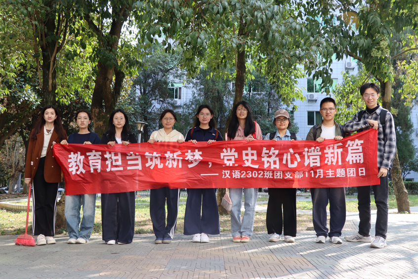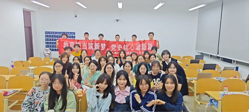 2024年11月16日,汉语2302班在逸夫楼403教室成功举办了一次以“教育担当筑新梦,党史铭心谱新篇”为主题的团日活动。本次活动由2302班李骏言担任主持人,班主任肖玉婷与全班32名团员共同参与活动。此次活动内容形式丰富,趣味性强且包含丰富的知识,增强了同学们对团组织的认同感和归属感。