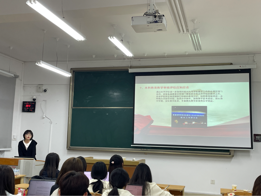 活动伊始,肖玉婷老师上台发言,她向同学们深入浅出地讲解了安全意识的重要性,并再次强调,在即将到来的本科教育评估中,每一位同学都应以积极向上的心态和脚踏实地的行动来迎接挑战,共同为班级争光添彩。